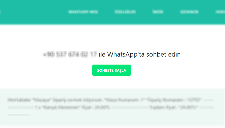 3- WhatsApp dan sipariş ver butonuna tıklayın.